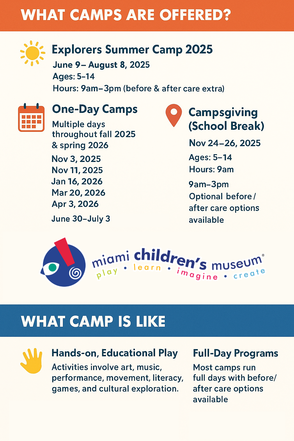 Here are some of the most common questions we get about preparing your children for their Miami Children's Museum camp experience!